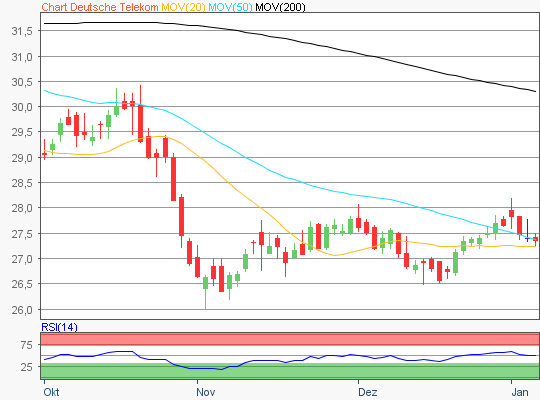 Zuletzt handelte die Deutsche Telekom Aktie im Bereich rund um die 27,42 Euro Marke.