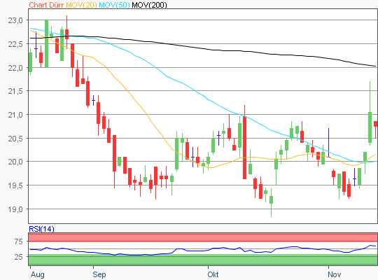 Zuletzt handelte die Dürr Aktie im Bereich rund um die 20,45 Euro Marke.
