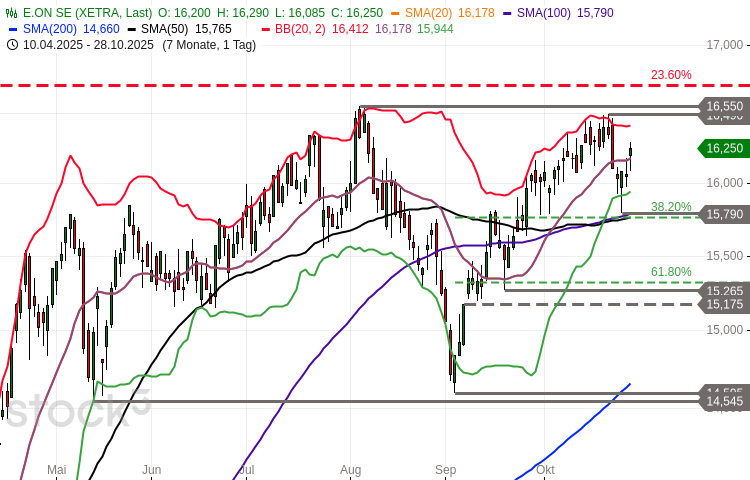 … den Aufwärtstrend in allen Zeitebenen bestätigen und mögliche nächste Ausdehnungsziele bei 17,08 EUR, 17,30 EUR, 17,76 EUR und 18,51 EUR ins Spiel bringen.