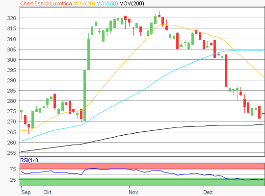 Zuletzt handelte die EssilorLuxottica Aktie im Bereich rund um die 270,1 Euro Marke.