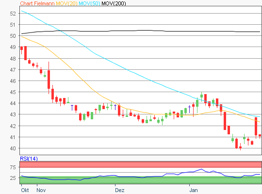 Zuletzt handelte die Fielmann Aktie im Bereich rund um die 41,0 Euro Marke.