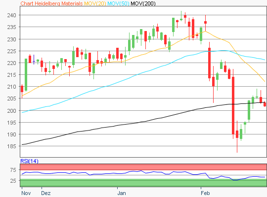 Zuletzt handelte die HeidelbergMaterials Aktie im Bereich rund um die 202,5 Euro Marke.