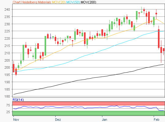 Zuletzt handelte die Heidelberg Materials Aktie im Bereich rund um die 210,2 Euro Marke.