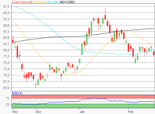 Zuletzt handelte die Hensoldt Aktie im Bereich rund um die 78,1 Euro Marke.