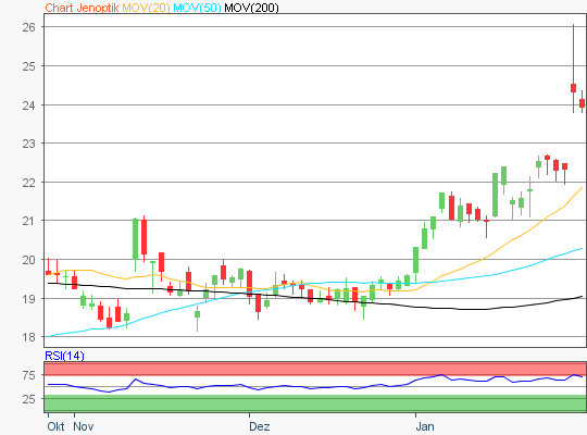 Zuletzt handelte die Jenoptik Aktie im Bereich rund um die 23,82 Euro Marke.