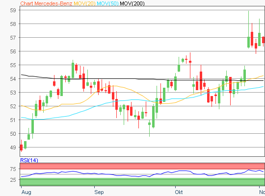 Zuletzt handelte die Mercedes-Benz Aktie im Bereich rund um die 58 Euro Marke.