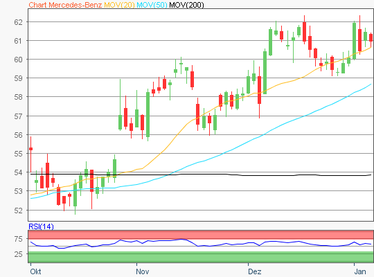 Zuletzt handelte die Mercedes-Benz Aktie im Bereich rund um die 60 Euro Marke.
