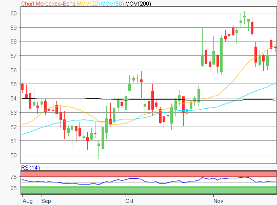 Zuletzt handelte die Mercedes-Benz Aktie im Bereich rund um die 57,35 Euro Marke.