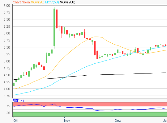 Zuletzt handelte die Nokia Aktie im Bereich rund um die 5,58 Euro Marke.