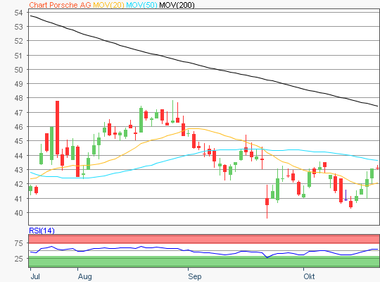 Zuletzt handelte die Porsche AG Aktie im Bereich rund um die 43 Euro Marke.