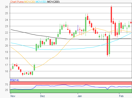 Zuletzt handelte die Puma Aktie im Bereich rund um die 23,51 Euro Marke.
