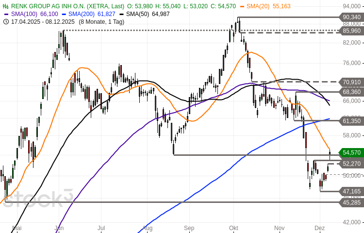 Die Aktie der Renk Group (WKN: RENK73) war bis auf ein im Oktober bei 90,34 EUR verbuchtes Allzeithoch haussiert.