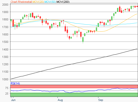 Zuletzt handelte die Rheinmetall Aktie im Bereich rund um die 969,0 Euro Marke.