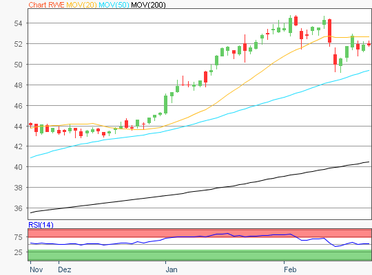 Zuletzt handelte die RWE Aktie im Bereich rund um die 51,94 Euro Marke.