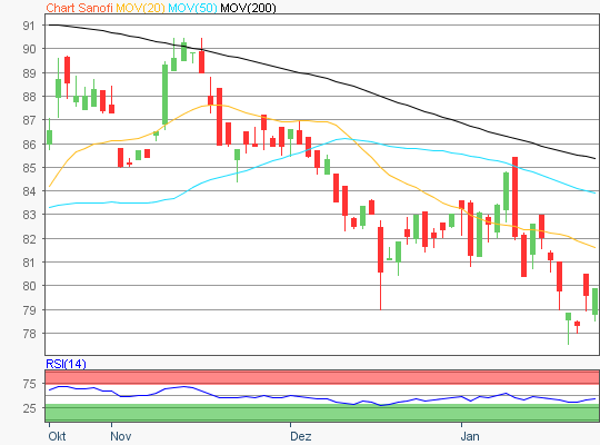 Zuletzt handelte die Sanofi Aktie im Bereich rund um die 79,74 Euro Marke.