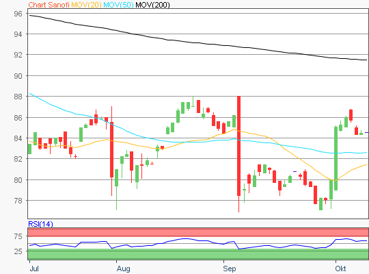 Zuletzt handelte die Sanofi Aktie im Bereich rund um die 84,82 Euro Marke.