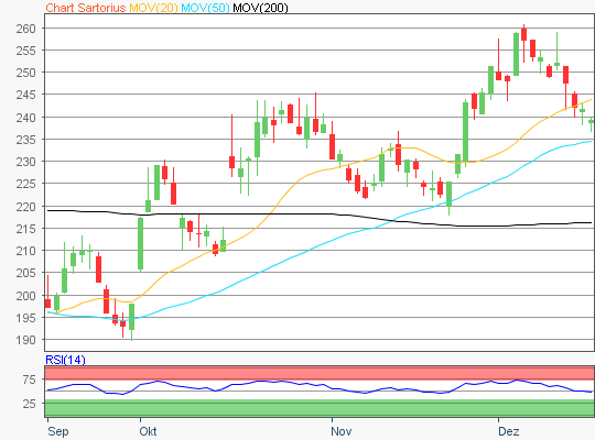 Zuletzt handelte die Sartorius Vz. Aktie im Bereich rund um die 238,7 Euro Marke.