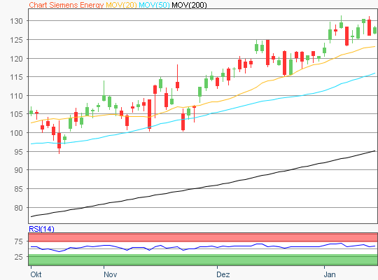 Zuletzt handelte die SiemensEnergy Aktie im Bereich rund um die 128,35 Euro Marke.