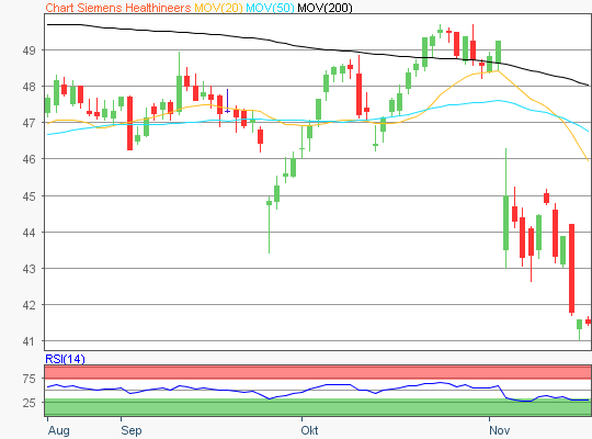 Zuletzt handelte die Siemens Healthineers Aktie im Bereich rund um die 41,42 Euro Marke.