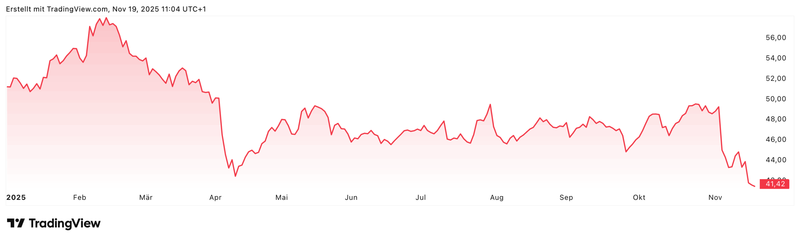 Seitdem korrigierte die Aktie bis zum 07. April 2025 auf ein Zwischentief von 41,21 Euro.