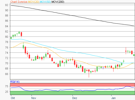 Zuletzt handelte die Symrise Aktie im Bereich rund um die 73,38 Euro Marke.