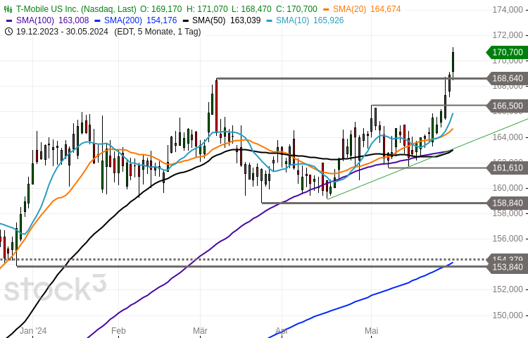 Société Générale: Die Aktie von T-Mobile US weist in allen Zeitebenen einen intakten Aufwärtstrend auf und verfügt dabei im kurzfristigen Zeitfenster über relative Stärke zum Gesamtmarkt.