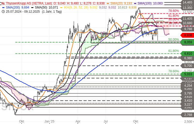Aktie im Fokus: Thyssenkrupp mit Chancen für neues Hoch, aber Bruch der Unterstützung könnte weitere Verluste nach sich ziehen!