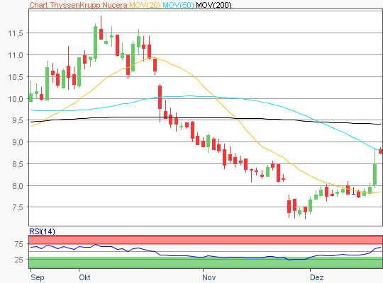 Zuletzt handelte die Thyssenkrupp Nucera Aktie im Bereich rund um die 9 Euro Marke.
