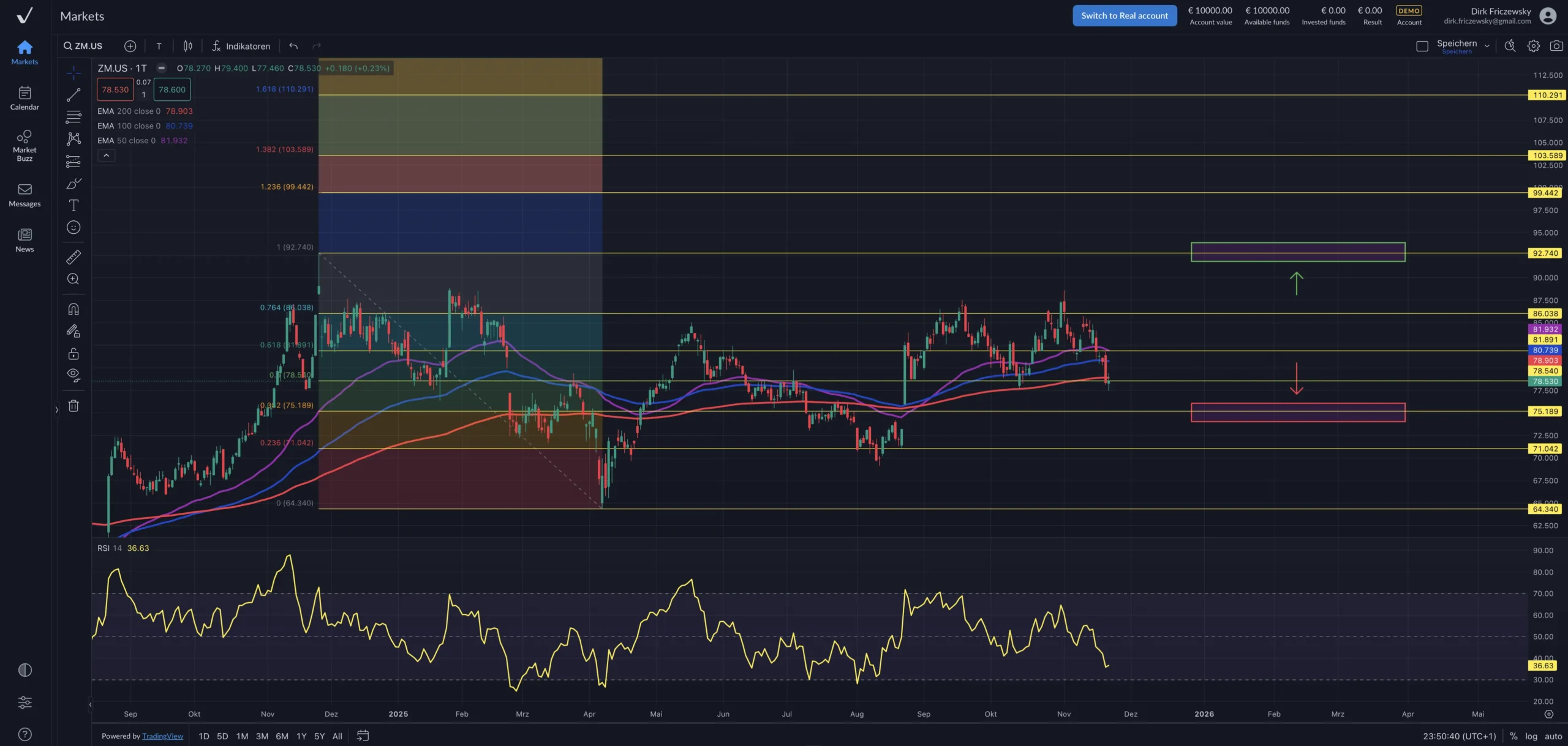 Die Aktie von Zoom Communications ging am Freitag, den 21. November 2025 mit einem leichten Kursgewinn von 0,27 Prozent und einem Schlusskurs von 78,63 US-Dollar an der Technologiebörse NASDAQ aus dem Handel. Seit Jahren kann die Aktie aus dem recht breiten Seitwärtskanal von 92,80 US-Dollar zur Oberseite und 55,06 US-Dollar zur Unterseite nicht ausbrechen.