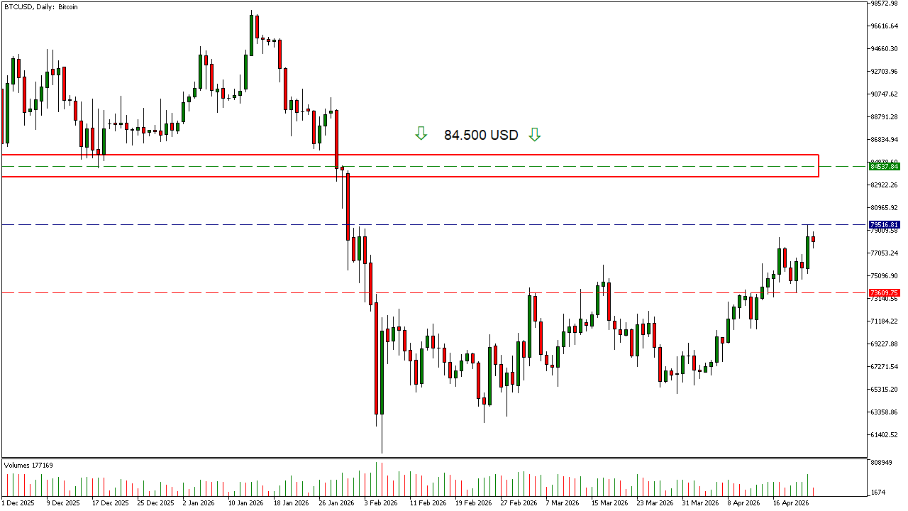 - Erstes Ziel: Bereich um 79.500 USD (Zwischenhoch)