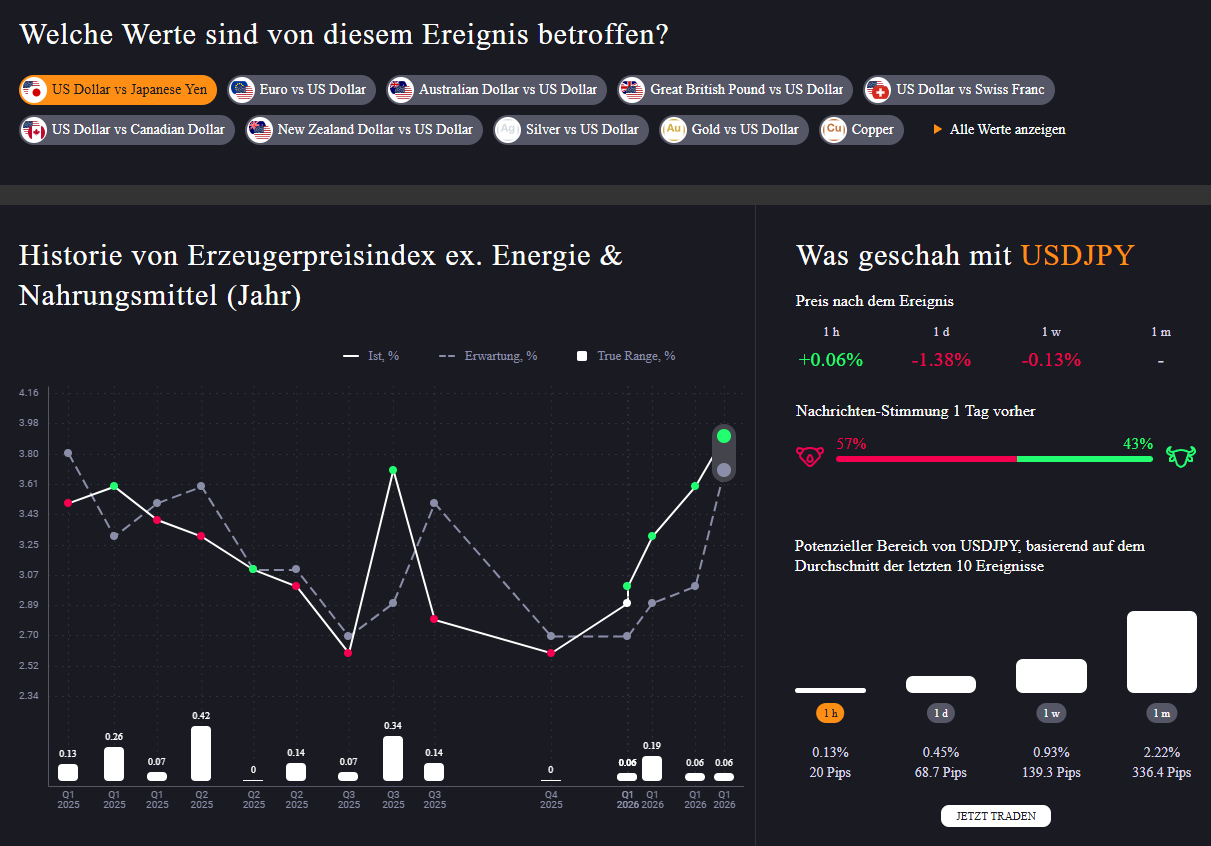 Am Dienstag folgt mit dem Erzeugerpreisindex (EPI) ein zentraler Inflationsindikator. Steigende Produzentenpreise verstärken die Inflationssorgen und dämpfen erneut die ohnehin niedrigen Zinssenkungserwartungen für 2026.