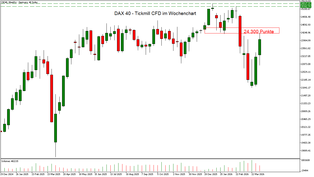Die Märkte klammern sich aktuell an die Aussicht auf konstruktive Gespräche zwischen den USA und dem Iran. Sollten diese Verhandlungen Fortschritte bringen, könnte der DAX kurzfristig weiter auf Erholungskurs bleiben. Genau das ist aktuell das Szenario, auf das viele Marktteilnehmer setzen.