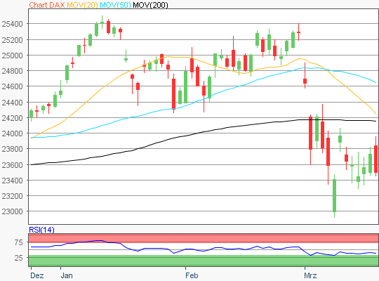 Der Xetra-DAX beendete den Mittwoch, den 18. März 2026 mit einem Kursverlust von 0,96 Prozent und 23.502,25 Punkten.