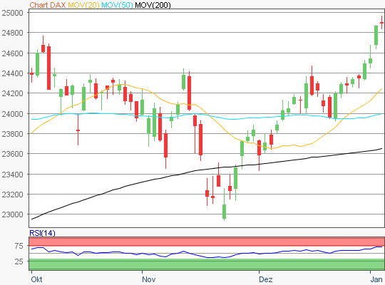 Die asiatisch-pazifischen Aktienmärkte wiesen am Mittwoch gemischte Ergebnisse auf. Die US-Futures tendierten kurz vor der Eröffnung der europäischen Börsen mehrheitlich zu Gewinnen. Die ersten DAX-Indikationen lagen am Morgen in einer Spanne von 24.961 bis 24.966 Punkten.