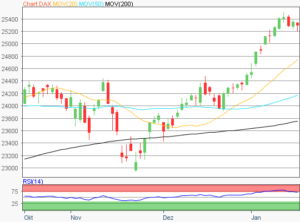 Der Xetra-DAX beendete den Freitag, den 16. Januar 2026 mit einem Kursverlust von 0,22 Prozent und 25.297,13 Punkten.