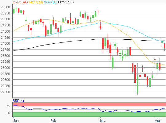 Der Xetra-DAX schloss am Donnerstag, den 09. April 2026 mit einem Kursverlust von 1,14 Prozent und 23.806,99 Punkten. Das Handelsvolumen via Xetra betrug rund 4,20 Milliarden Euro.