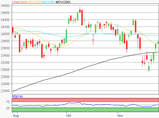 Der Xetra-DAX beendete den Donnerstag mit einem leichten Kursplus von 0,18 Prozent und 23.767,96 Punkten. Das Handelsvolumen via Xetra betrug lediglich recht dünne 2,10 Milliarden Euro.