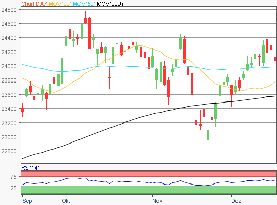 Der Xetra-DAX schloss am Dienstag, den 16. Dezember 2025 mit einem Kursverlust von 0,63 Prozent und 24.076,87 Punkten. Das Handelsvolumen via Xetra betrug rund 3,57 Milliarden Euro.