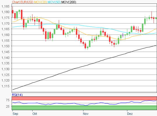 Ausgehend vom Verlaufstief des 05. November 2025 von 1,1468 bis zum jüngsten Zwischenhoch des 16. Dezember 2025 von 1,1804, wären die nächsten Ziele zur Ober- und Unterseite näher zu ermitteln.