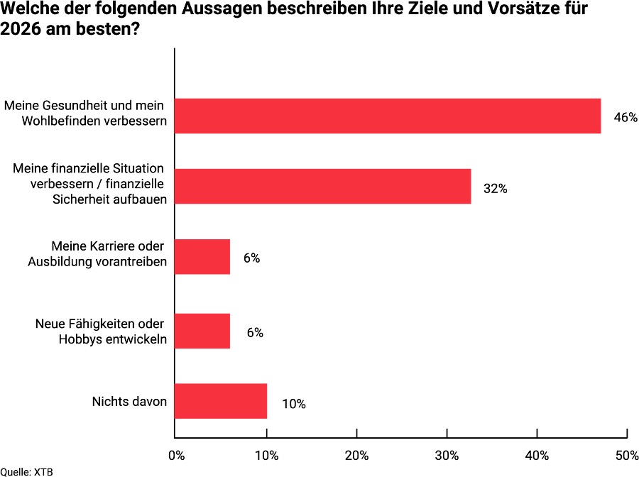 Die XTB-Umfrage zeigt deutlich: Finanzielle Sicherheit, Geldanlage und Altersvorsorge sind für viele Deutsche zentrale Themen zum Jahresbeginn 2026, insbesondere für junge Menschen und Frauen. Entscheidend ist jedoch, Vorsätze nicht nur zu formulieren, sondern konsequent umzusetzen.