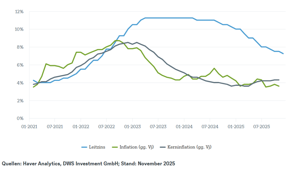 Die mexikanische Zentralbank Banxico hat sich längst als Inflationsbekämpferin bewährt. Als die Preise nach der Pandemie stiegen, reagierte sie schnell. Wie unser „Chart der Woche“ zeigt, konnte Banxico deshalb früh mit Zinssenkungen beginnen.