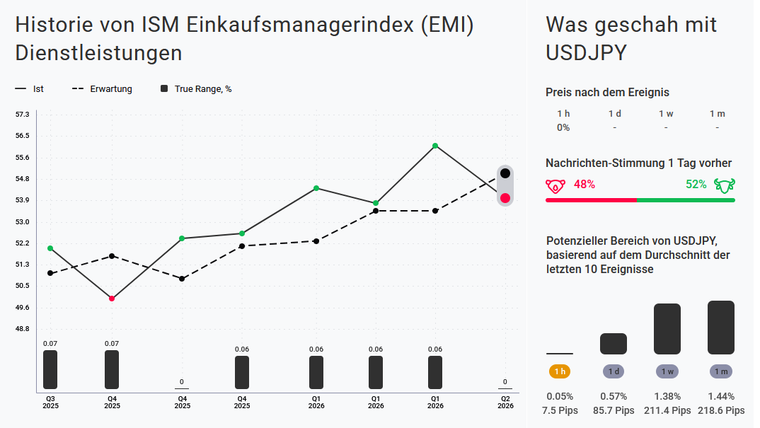 Der ISM-Einkaufsmanagerindex für den US-Dienstleistungssektor ist im März von 56,1 auf 54 Punkte gefallen.