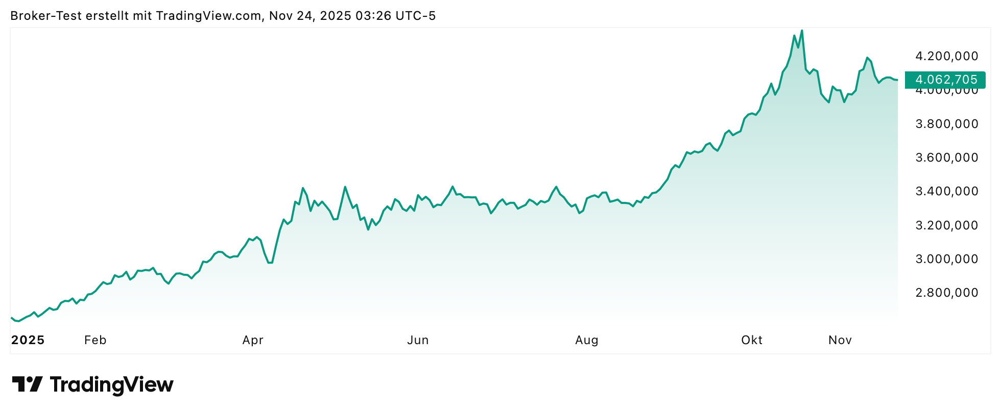 - Die Analyse vom Verlaufstief des 28. Oktober 2025 von 3.879,20 US-Dollar bis zum jüngsten Zwischenhoch des 13. November 2025 von 4.244,93 US-Dollar hat weiterhin Bestand, um die nächsten Widerstände bei den Marken von 4.105/4.158 und 4.245 US-Dollar ermitteln zu können.