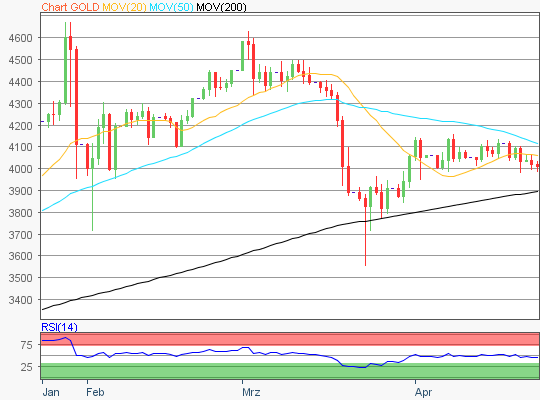 Der Preis für eine Feinunze Gold fiel weiter zurück und bildete damit das tiefste Tief seit dem 13. April 2026 aus.