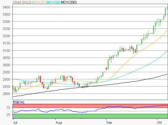 Die Rekordfahrt nimmt kein Ende – nun peilt man bereits die Marke von 4.000 US-Dollar je Feinunze an.