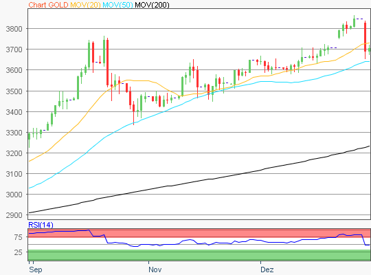 Zum Jahresende versuchte Gold nochmal auf neue Höhen zu kommen, was zwischenzeitlich auch kurz gelang. Allerdings gab es dann direkt am vorletzten Handelstag des Jahres dann noch eine kleine, aber scharfe Korrektur. Trotzdem geht Gold natürlich mit einem Riesenplus aus 2025 raus.