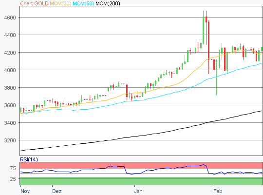 - Ausgehend vom Rekordhoch des 29. Januar 2026 von 5.598,28 US-Dollar bis zum jüngsten Verlaufstief des 02. Februar 2026 von 4.399,92 US-Dollar, wären die nächsten Widerstände bei den Marken von 4.999/5.141/5.315 und 5.598 US-Dollar, sowie bei den Projektionen zur Oberseite von 5.881/6.056 und 6.339 US-Dollar ermitteln zu können.