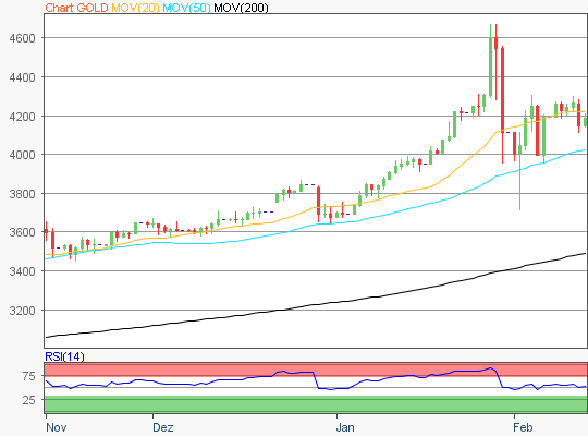 - Ausgehend vom Verlaufstief des 02. Februar 2026 von 4.399,92US-Dollar bis zum jüngsten Zwischenhoch des 11. Februar 2026 von 5.119,03 US-Dollar, wären die nächsten Widerstände bei den Marken von 5.119/5.289/5.394/5.563und 5.668/5.838 und 6.008 US-Dollar zu ermitteln.
