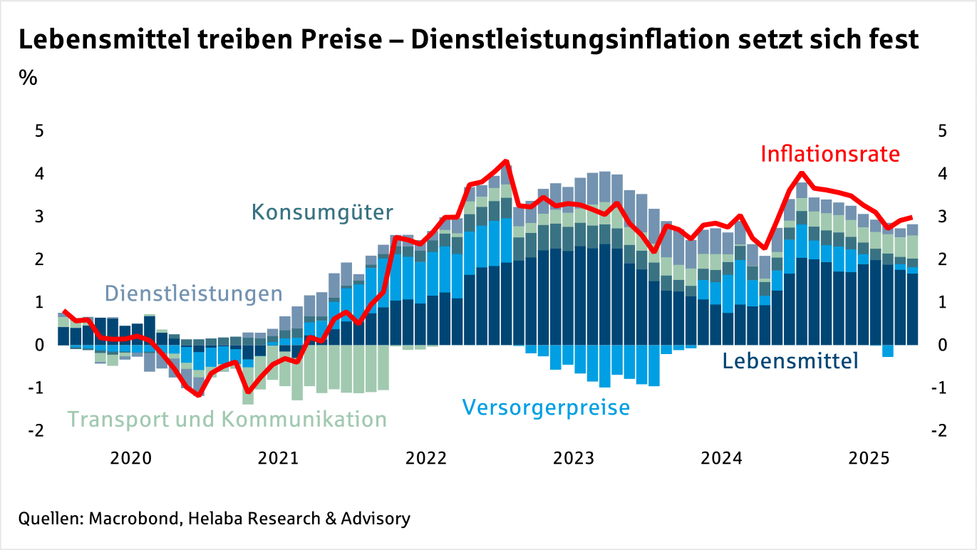 Besonders bei Dienstleistungen, die weniger einfach durch Importe ersetzt werden können, bleibt der Lohndruck hoch. Dies wirkt sich positiv auf die Konsumlaune aus und sorgt für eine stabile Binnennachfrage.