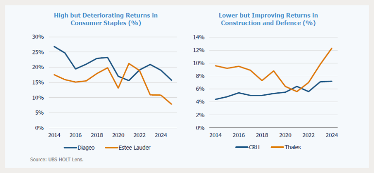 Anleger, die nach „Qualität“ suchen, neigen oft dazu, einfache, leicht zu filternde und rückwärtsgerichtete Kennzahlen – etwa die Rendite auf das investierte Kapital (ROIC) – mit einem echten Verständnis für die Dauerhaftigkeit der Wettbewerbsposition eines Unternehmens gleichzusetzen. Letzteres ist jedoch naturgemäß komplex und in hohem Maße qualitativer Natur.